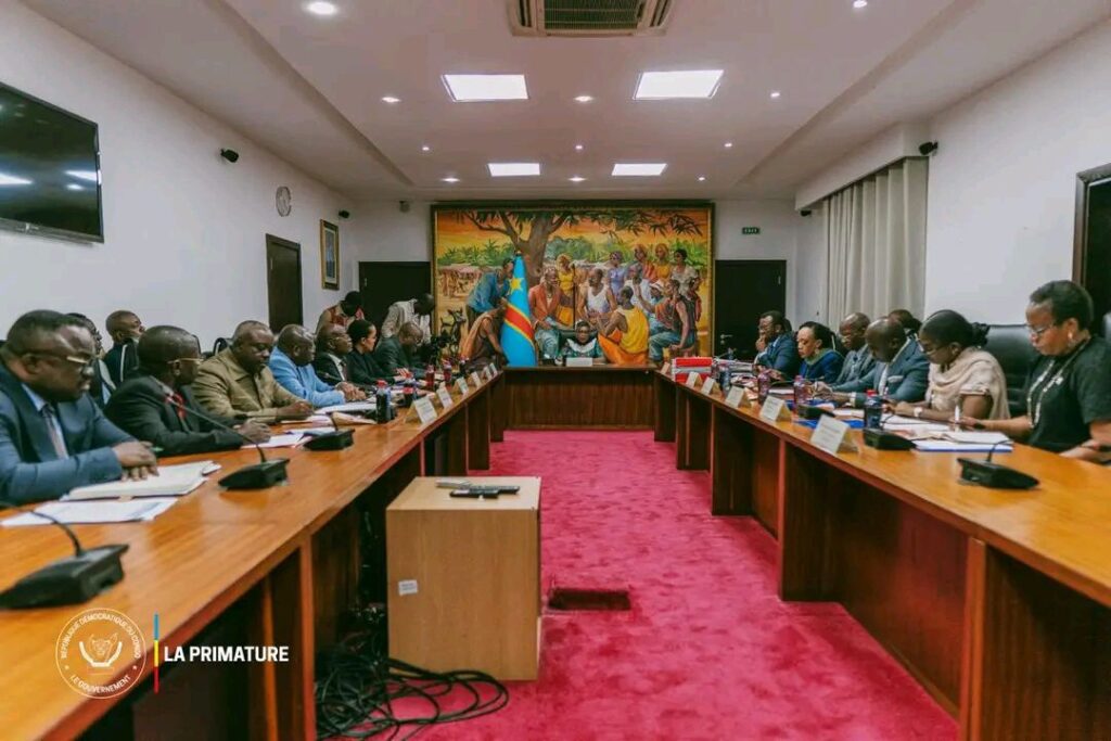 Kinshasa, le 05 mars 2026 – La Première Ministre, Cheffe du Gouvernement, a présidé ce jeudi la réunion de cadrage relative à l’audit de l’état liquidatif de la paie des agents et fonctionnaires de l’État. Une première rencontre pour donner suite aux instructions du Président de la République, Félix Antoine Tshisekedi, à l’occasion de la 79ème réunion du Conseil des ministres, en vue de contenir les pressions croissantes exercées sur la trésorerie de l’Etat par l’accroissement de la masse salariale. Une séance de travail importante à laquelle ont participé, entre autres, les Vice-premiers Ministres du Budget, de la Fonction publique, Modernisation de l’administration, et Innovation du service public et de la Défense nationale et des anciens Combattants, la Ministre de l’Éducation nationale et Nouvelle Citoyenneté, les Vice-ministres du Budget et des Finances, le Premier Président de la Cour des comptes ainsi que l’Inspecteur Général-Chef de service de l’Inspection Générale des Finances (IGF).