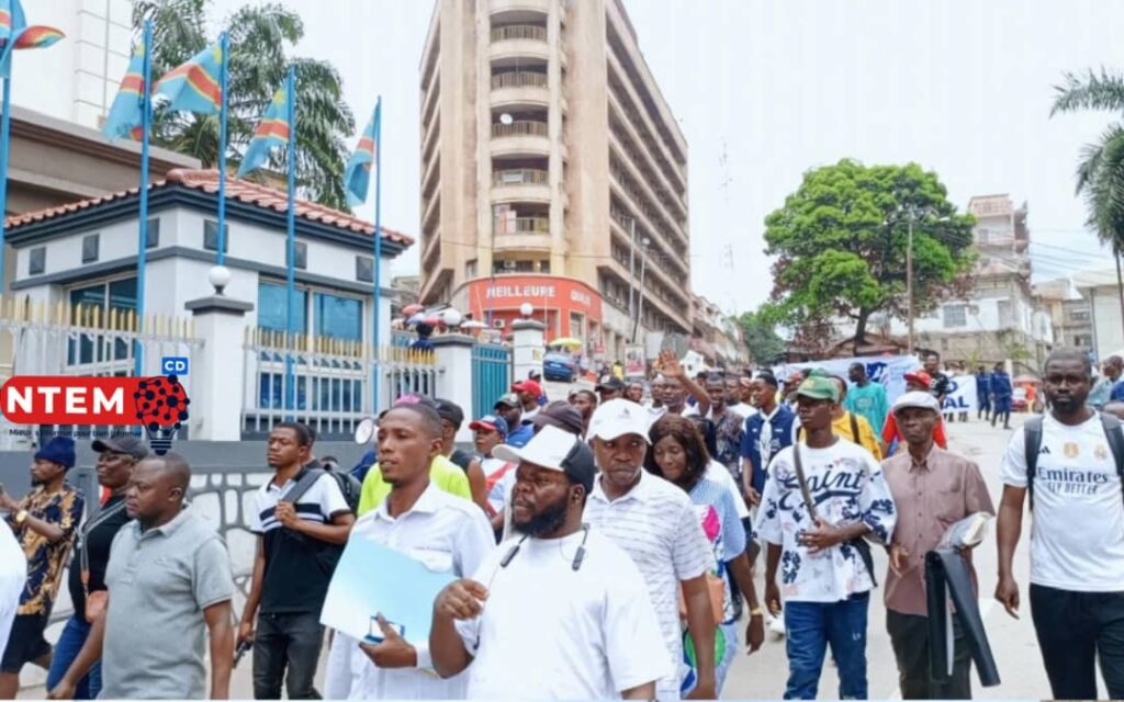 Dès les premières heures de la matinée, plusieurs dizaines de manifestants se sont rassemblés au rond-point Simon Kimbagu (Ex-Coca-Cola), point de départ d’une procession ayant traversé plusieurs artères majeures de la ville. Le cortège est passé notamment par les ronds-points M’zee (ex-24 Novembre), Félix-Antoine Tshisekedi Tshilombo (Ex-Londe) et le rond-point 24/15, avant d’atteindre le bâtiment du gouvernorat provincial.