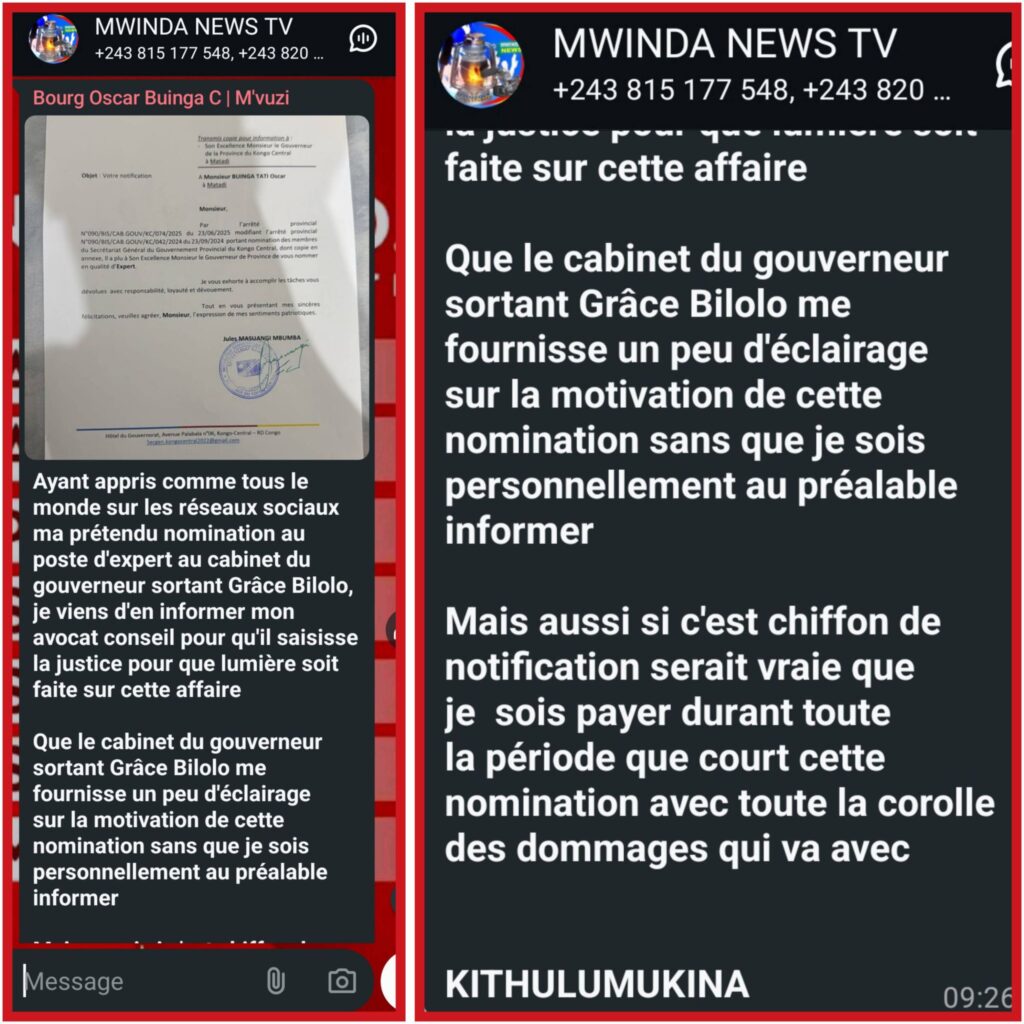 Accueil » Gouvernorat du Kongo Central : fuite ou manipulation ? La prétendue nomination de Buinga Tati Oscar comme expert fait débat