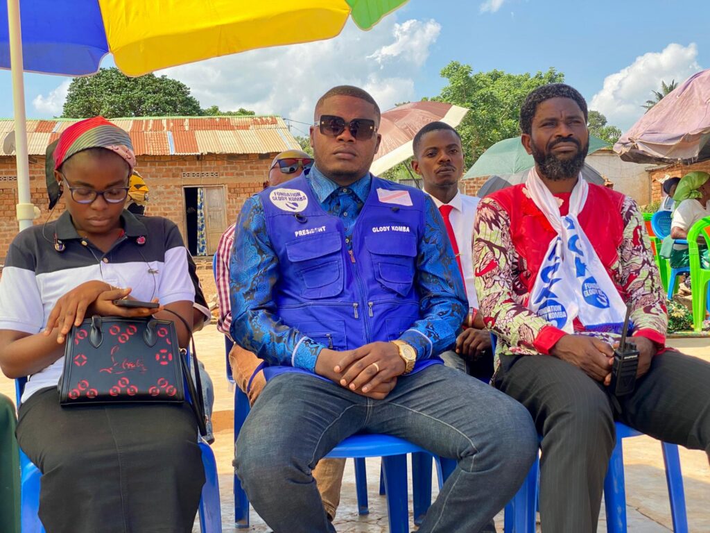 La remise a été effectuée par Glody Komba Mbimbi, président de la fondation portant son nom, accompagné de plusieurs membres de la FGK. Le geste s’inscrit dans une démarche d’appui aux structures communautaires affectées par les intempéries, dans un contexte où de nombreuses églises, écoles et habitations ont subi d’importants dégâts à Kimpese.