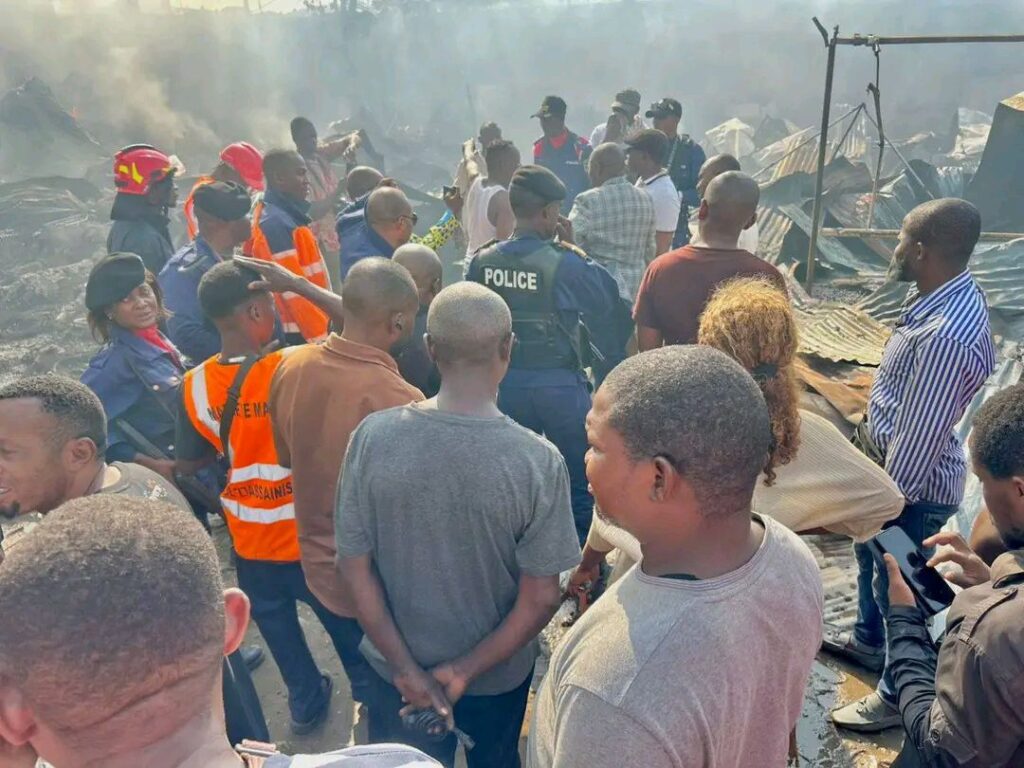 Selon les premières constatations des autorités, un court-circuit électrique pourrait être à l’origine du sinistre. Si aucun blessé n’a été signalé, les pertes matérielles sont considérables et plusieurs commerçants se retrouvent démunis. La circulation sur la route de Kinkanda a été fortement perturbée, les automobilistes et motocyclistes contraints de ralentir ou de dévier leur itinéraire face à l’épaisse fumée et à l’ampleur du feu.
