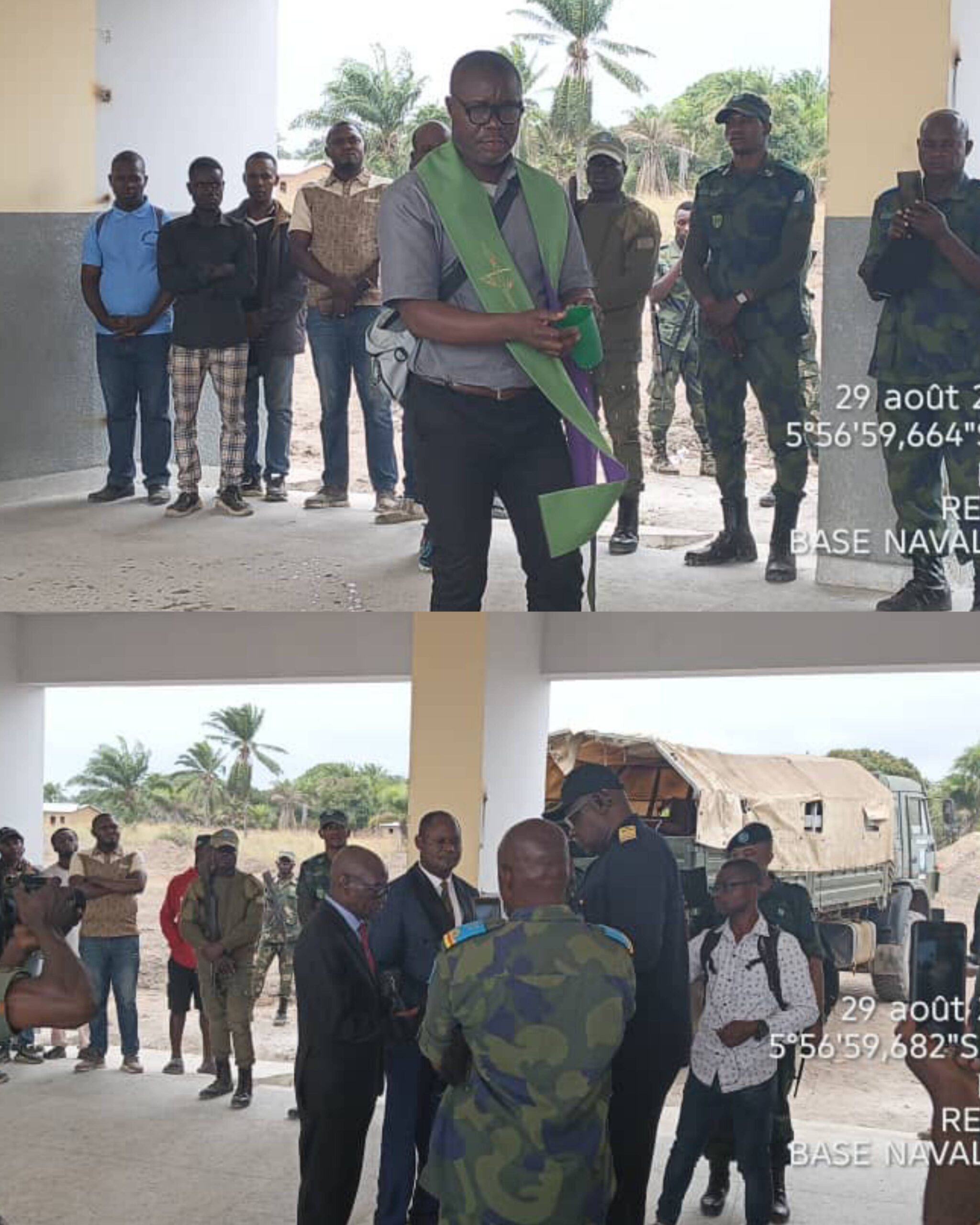 La cérémonie, tenue le 29 août 2025, a réuni le commandant de la base navale de Banana, ses collaborateurs, des représentants de l’Agence Congolaise des Grands Travaux (ACGT), le chef coutumier de Kindofula ainsi que l’aumônier militaire. Le corps de génie a procédé à la remise officielle des bâtiments scolaires aux responsables d’établissements.