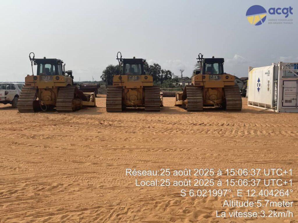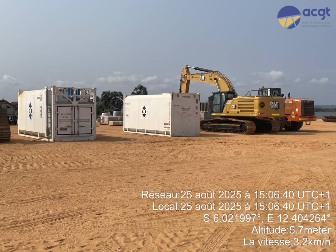 Après une première phase de dragage, les opérations ont franchi une nouvelle étape en juillet 2025, avec le lancement officiel de l’installation du chantier. Les travaux de terrassement s’étendent actuellement sur 400 mètres, destinés à accueillir la future base-vie des ouvriers et techniciens.