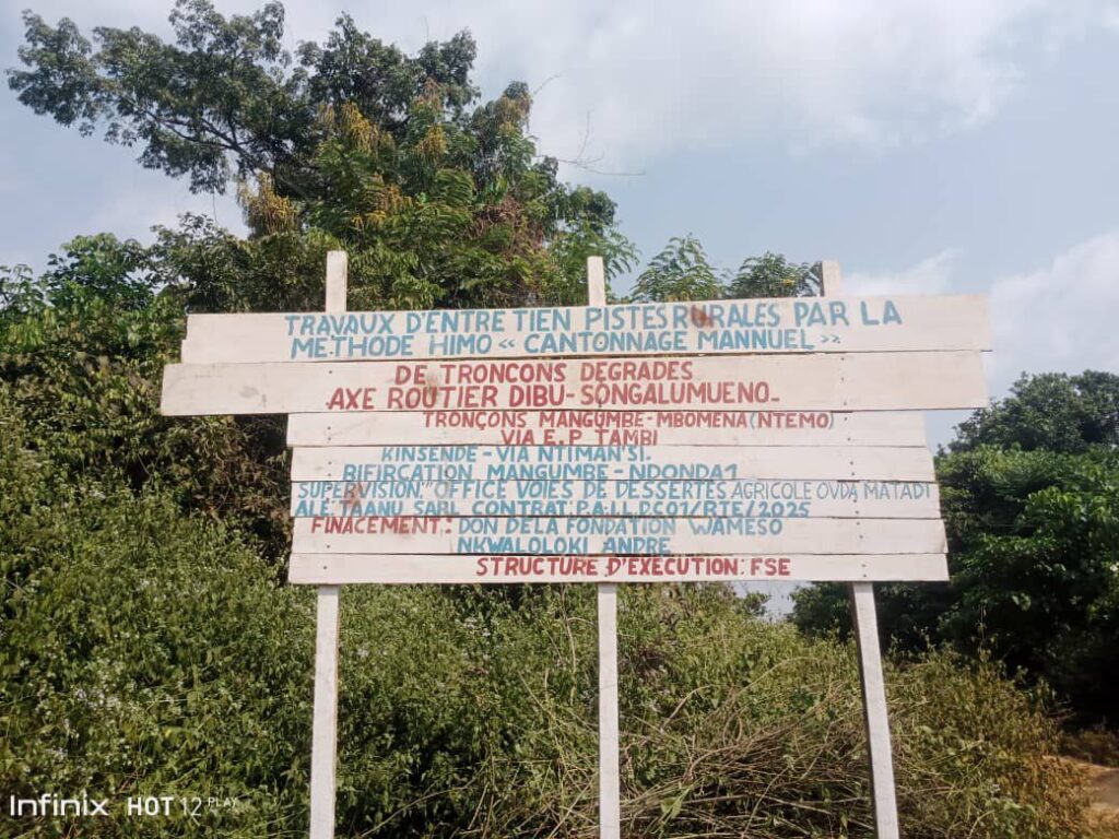 La cérémonie s’est tenue dans le village de Dibu, point de départ symbolique de cette action communautaire. Des brouettes, pelles, houes et autres outils ont été remis aux habitants afin de permettre l’exécution des travaux sur différents tronçons jugés prioritaires. Parmi eux figurent les axes Dibu – Songalumueno, Mangumbe – Mbomena via l’EP Ntambi, Kisendi – Ntimansi, ainsi que la bifurcation Mangumbe – Ndonda 1.
